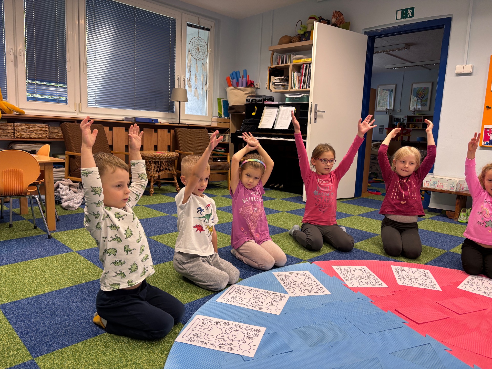 Každé dítě postupuje svým tempem. Prostor je bezpečný a nastaven tak, aby mohlo růst bez tlaku a porovnávání.